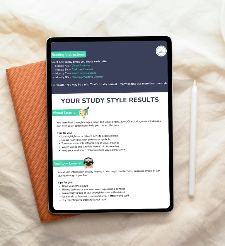 Take the FREE Study Styles Quiz — it only takes a few minutes and gives you insights you can use today.
